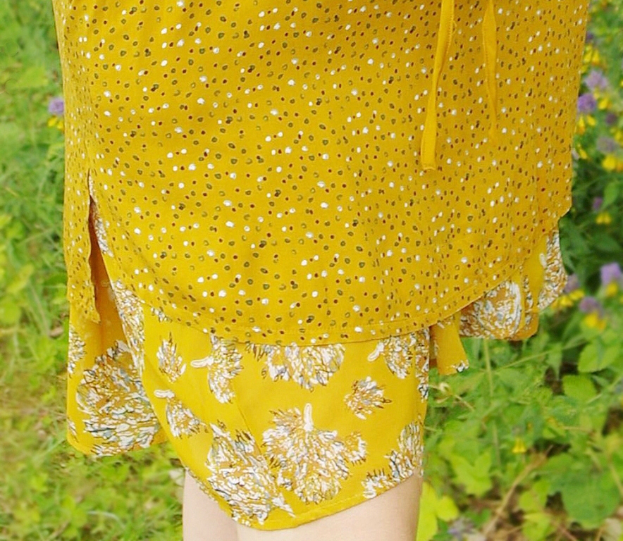 NB! Mõlemad tuunikad on ilma voodrita! Komplekti kuuluvat läbipaistvat lillemustrilist tuunikat võib kanda eraldi näiteks rannariietega või alus-kleiti kasutades ka “oversize” stiilis minikleidina. Samuti on eraldi kantav ka täpiline tuunika, mille kangas ei ole läbipaistav.
