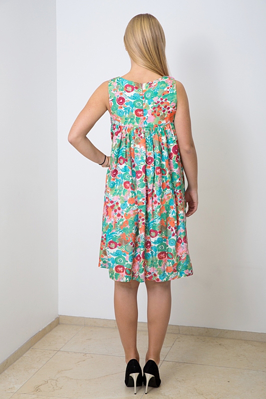 Kleidi seelikuosa on volditud pitsist passeosa õmbluse vahele ning on ilma vöökohata vabalt langev. Taga pikk lukk. Kleidil on valgest õhukesest polüesterkangast vooder.