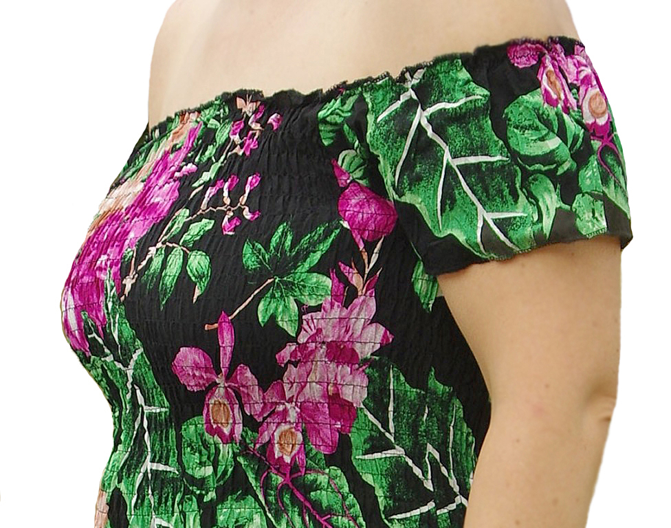Kleidil on väikesed kellukakujulised raglaanlõikelised varrukad, avaras kaeluses läbiõmmeldud kummipael. Pihaosa kuni vöökohani kummiga kroogitud. Seelikuosa on sirgelõikeline.