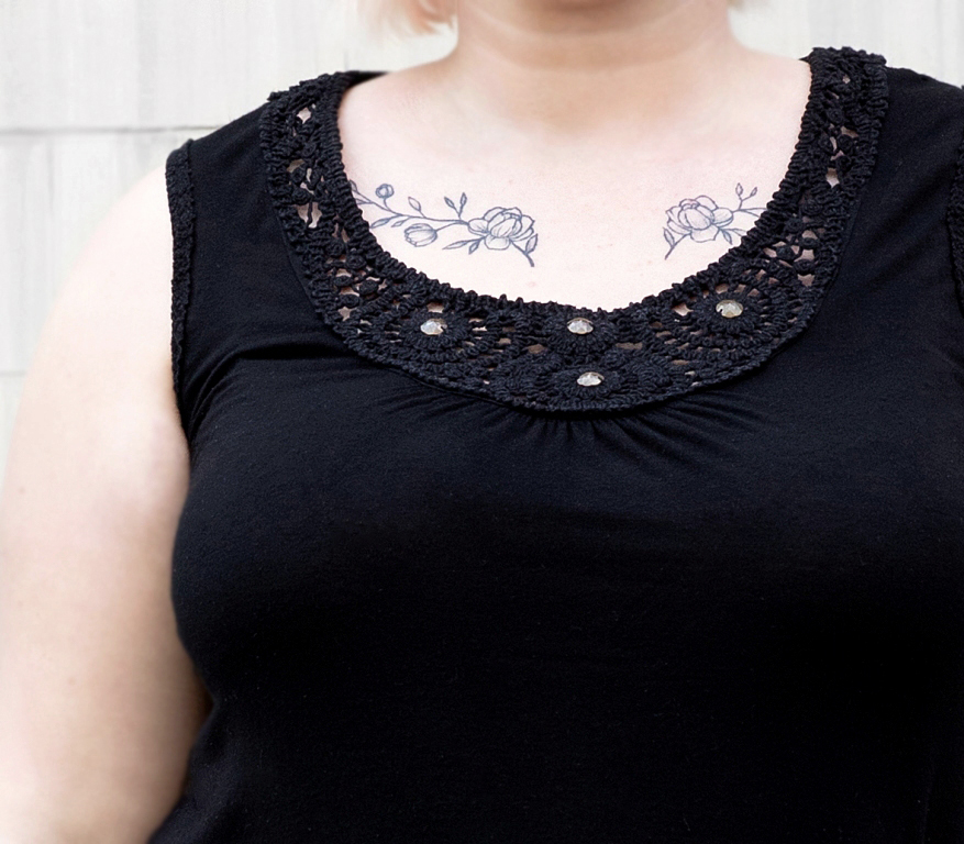 Must puuvillane särgik pitskaunistusega (XL)