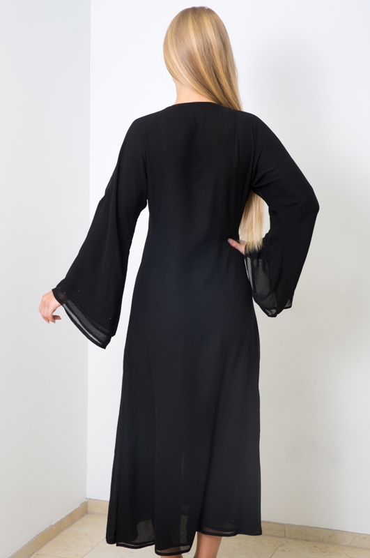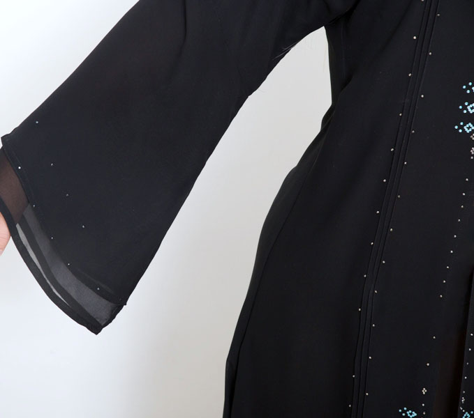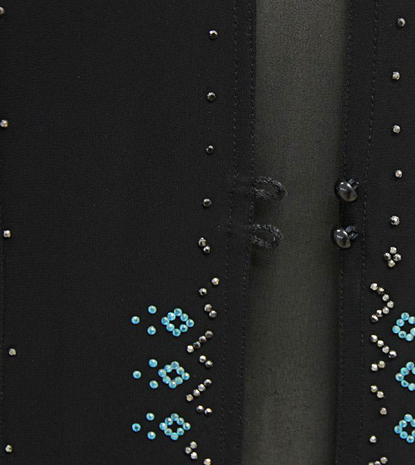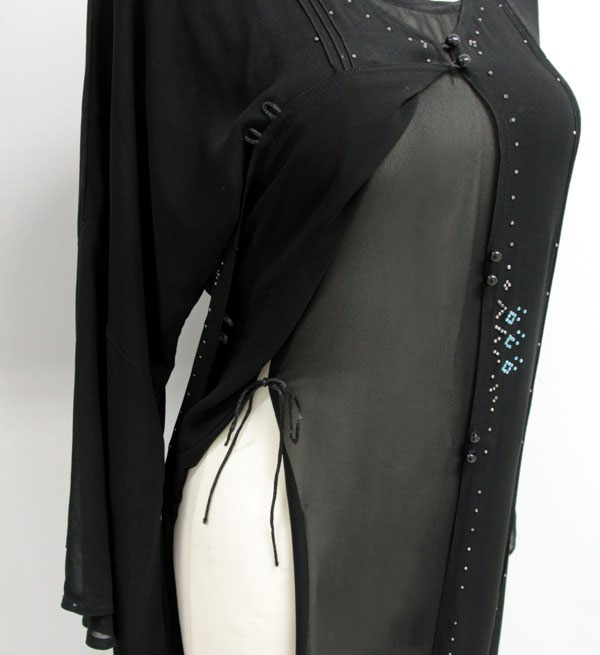 Varrukad on ülaosast raglaanlõikelised, küünarnukist õmblusega ja alt laienevad. Varrukaotstes musta värvi säravad ilukivikesed.
