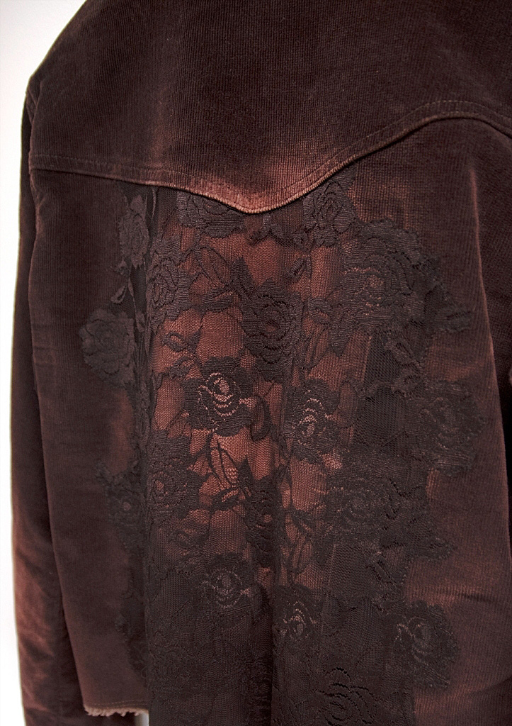 90-ndate stiilis teravate kraenurkade ja revääridega punakas-pruuni värvi velvetkangast pikkade varrukatega jakk. Esiosal pronksivärvi metalltrukid ja kaunistuseks taskuklapid (ei ole taskud) ning nöörvoldid. Varrukad alt pisut laienevad. Varrukaotsad ja alläär narmastatud, varrukaotstes pikk lõhik, allääres mõlemal küljel väikesed lõhikud.