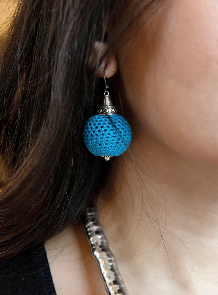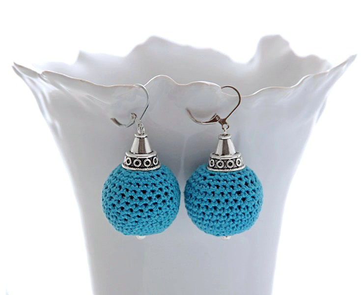 X Siniste heegeldatud helmestega ehtekomplekt